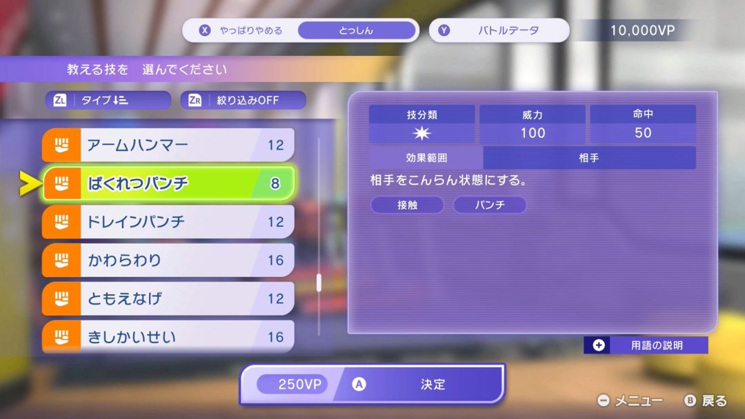 ガルーラのトレーニング画面だが、グロウパンチは見当たらない