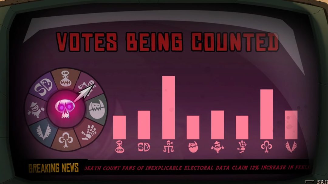 党として提案できる法律はさまざまな種類があり、たとえばヴァンパイア党なら国民の首にカロリー量を示すタトゥーを義務付けることが可能。またゾンビ党として、国民の歩行速度を制限したりできるという。ゲームの難易度をあげるため、あえてバカげた公約を打ち出すこともできるとのこと。そうして思いのままに国を作り変えつつ、支持率が下がって辞任しないで済むように、魑魅魍魎うごめく政界を生き抜いていくのだ。