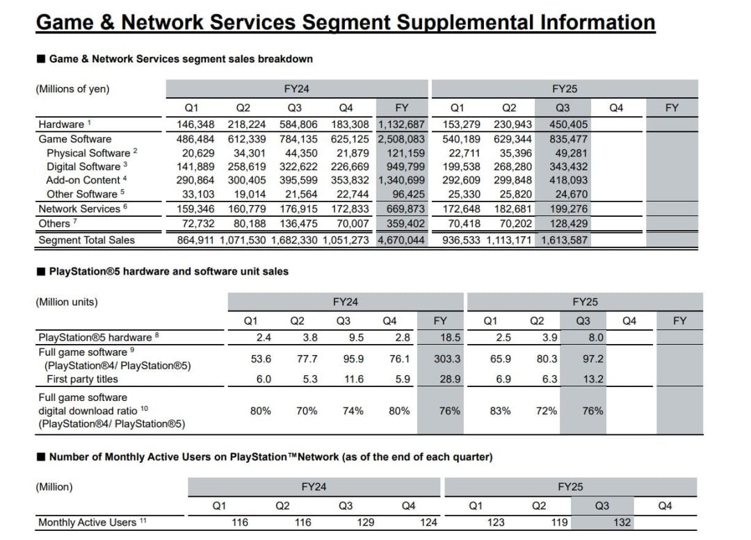 ソニーグループは2月5日、「2025年度第3四半期」の業績を発表した。決算資料にて、PS5の累計販売台数がPS3を上回ったことが明らかになった。また、PlayStation Networkの月間アクティブユーザー数も過去最高を記録している。