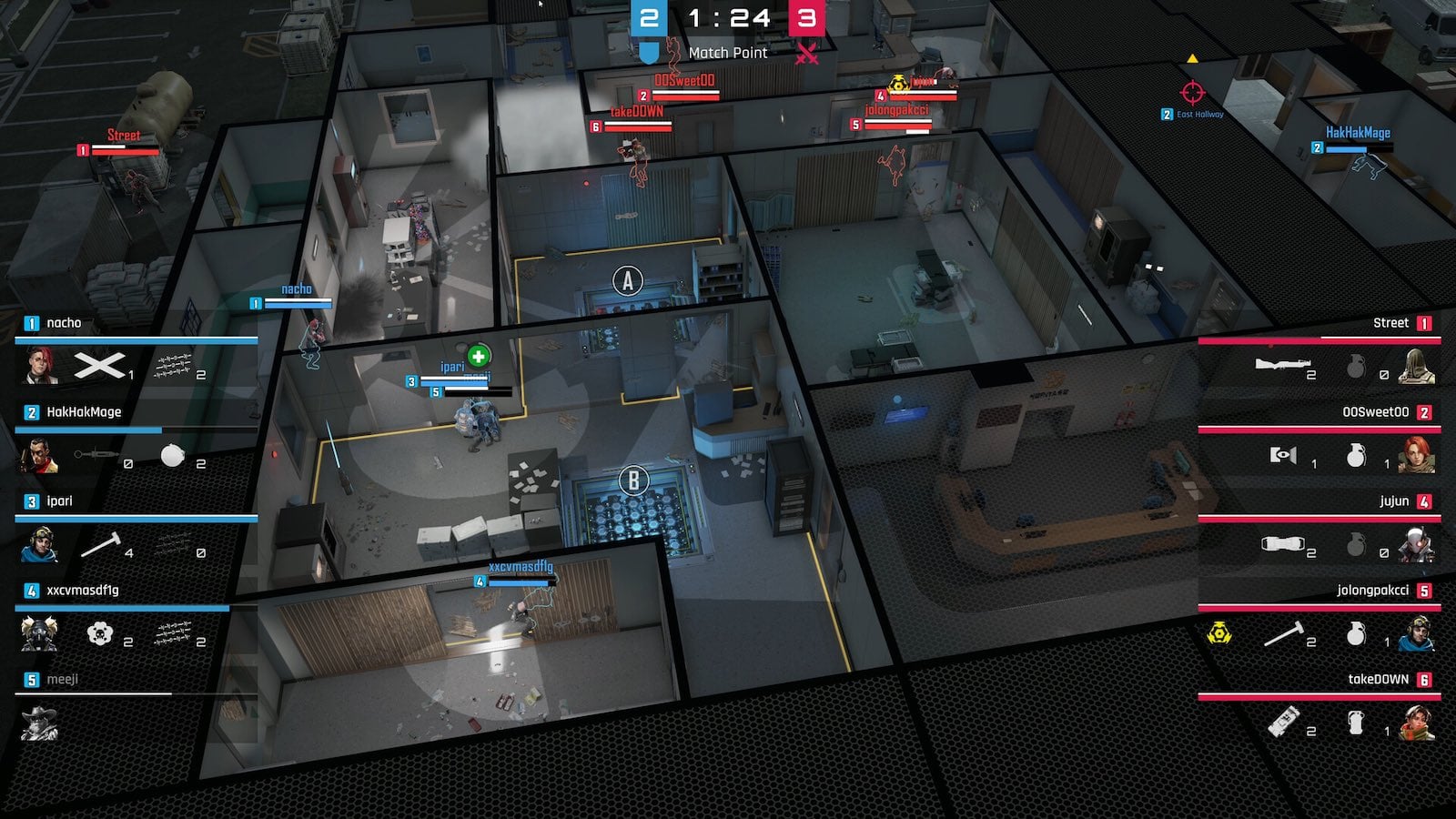 本作は、見下ろし型視点を採用する、5対5のチーム制オンライン対戦ゲームだ。屋内戦闘を中心とし、仲間と視界を共有できるシステムなどが特徴となる。