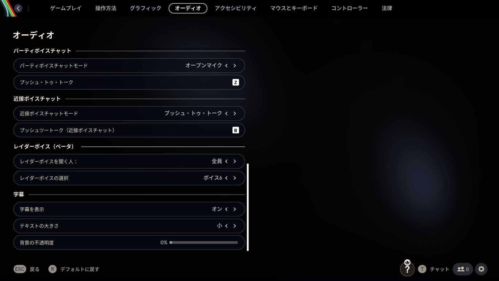 この機能はオプションのボイスチャット設定にて「レイダーボイス」としてまずはベータ版で実装されている。本機能では、ゲーム内ボイスチャット全般または近接ボイスチャット限定で、自分の声のボイスチェンジが可能。上述の動画のような女性風の音声から男性風の音声まで、声色の違いで10種類のボイスが用意されている。