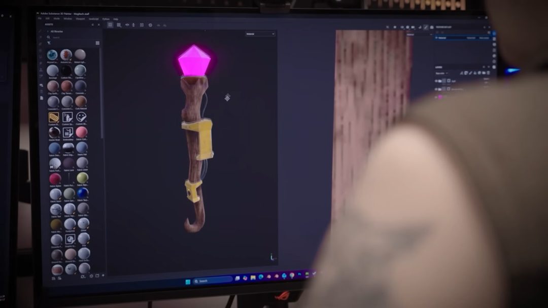 また、魔法と機械技術を融合した新たな武器もお披露目。「魔法の杖」のような見た目をしているものの、先端に備えられた紫色の宝石には電力ケーブルが接続されているなど、科学的な側面を想起させる造形のアイテムとなっている。加えて以前のデベロッパーブログなどで紹介されたアイテムとして、「リーフブロワー」「蘇生機」「トランシーバー」といったアイテムも改めて紹介されている(関連記事1、関連記事2)。