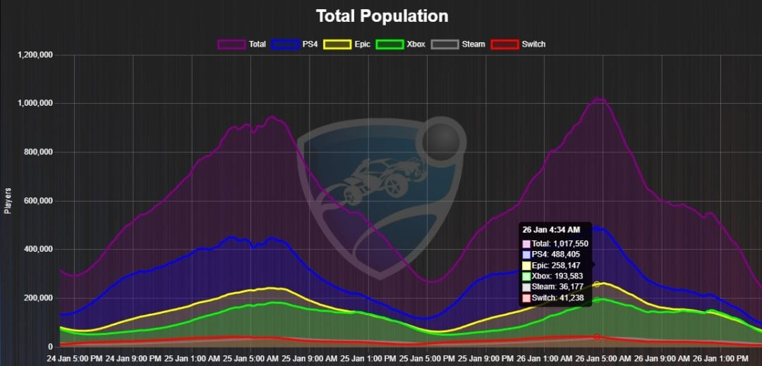 『ロケットリーグ(Rocket League)』において、現地時間1月26日に同時接続プレイヤー数が100万人を突破したことが明らかになった。