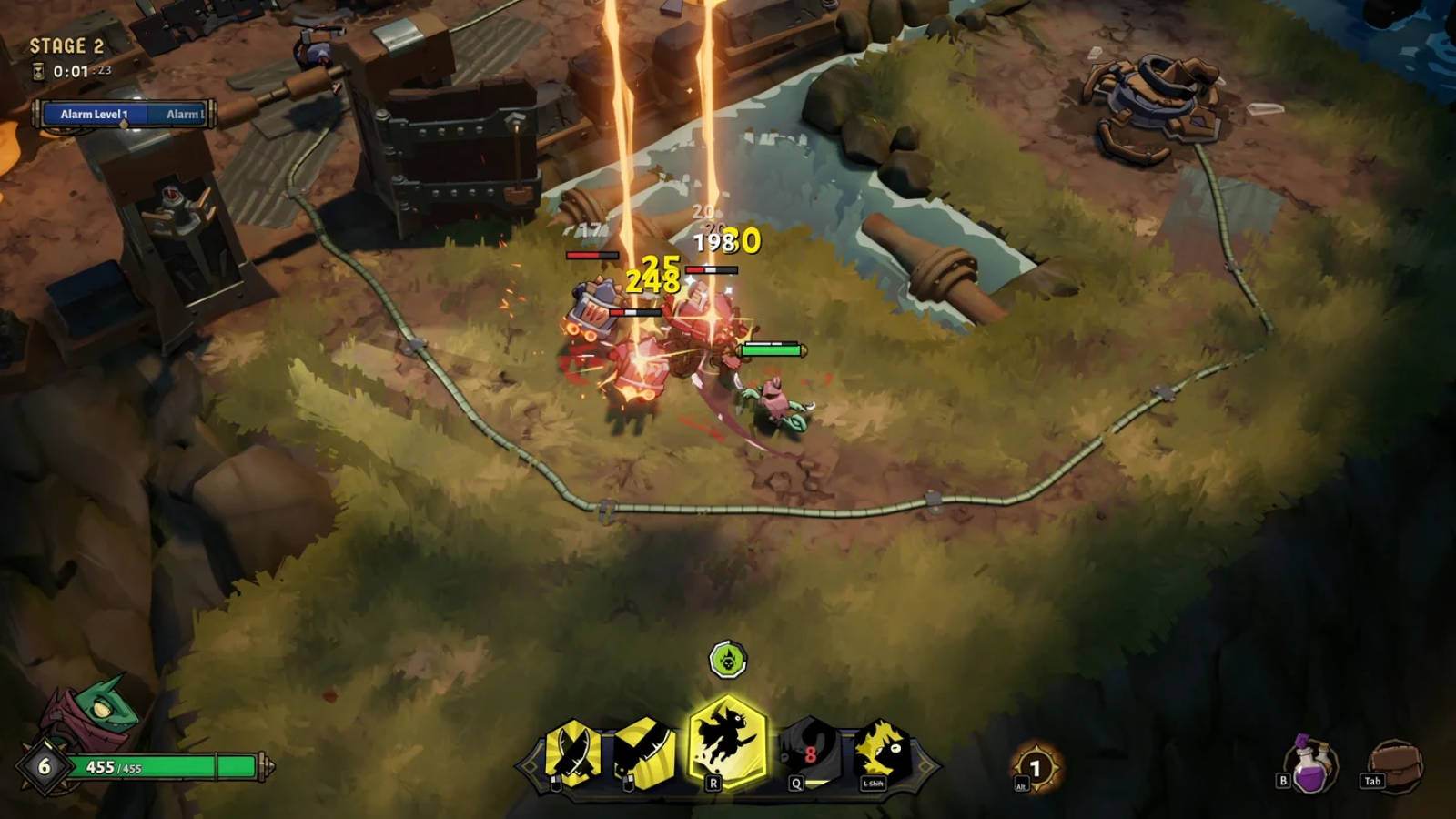 本作では「エリア分けされたステージで敵を全滅させながら進んでいく」「3択のうち1つ選ぶかたちでパワーアップを獲得する」といった『Hades』を彷彿とさせるゲームサイクルを採用。パークのほか装備品も組み合わせながらビルドを構築していける。