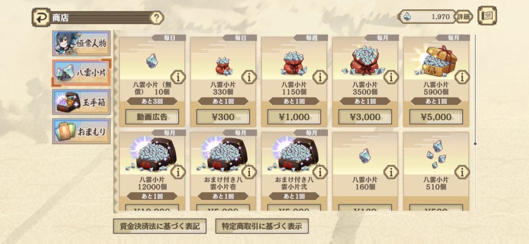 2月5日にリリースされた本作について、ユーザーの間ではゲーム内の「動画広告」に見られるある特徴が話題となっている。本作においては、数十秒の動画広告を視聴することにより、「八雲小片(無償)」10個を1日3回まで、合計で最大30個受け取ることができる。ほかの基本プレイ無料モバイルゲームでもよく見られる、広告の視聴によりいわゆる“無料ガチャ石”がもらえる仕組みだ。これ自体は至ってよくあるシステムと言える。