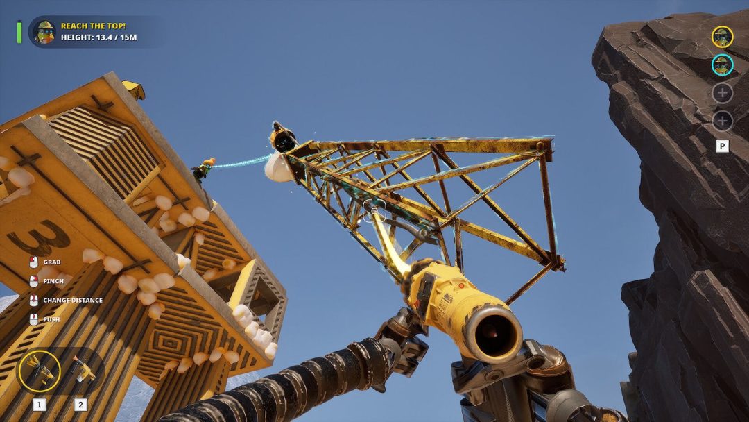 プレイヤーキャラクターである建設用ロボットは、移動に役立つジェットパックのほか、グラビティガンやフォームガンといったツールを装備。グラビティガンは、オブジェクトを掴んで移動させられるビームを発射でき、フォームガンは泡のようなものを射出できる装備だ。その泡は固まって足場になるほか、オブジェクト同士をくっつける接着剤にもなる。広範囲に射出するプラットフォームフォームと、ピンポイントに出せるインスタントフォームを切り替えて使用可能。溶かして除去する機能も用意されている。