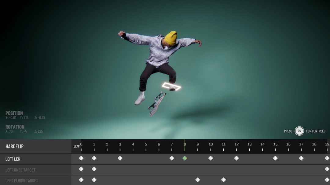 本作には物理演算ベースのトリックシステムが採用され、キャラクターの足が実際にボードを捉える表現などにより、リアルな感覚を味わえるという。さらに、本作には「Animation Studio」というキャラクターのアニメーションのカスタマイズ機能も搭載。特定のトリックを繰り出した際の体の動き、足や手の位置などを細かく調整し、自分だけのスタイルを作ることが可能だ。作成したアニメーションセットの共有機能も用意される模様である。