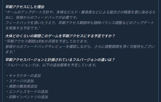 ――ちなみに、デモ版時点でも更新頻度は高いです。早期アクセス版はどの程度アップデートされますか。