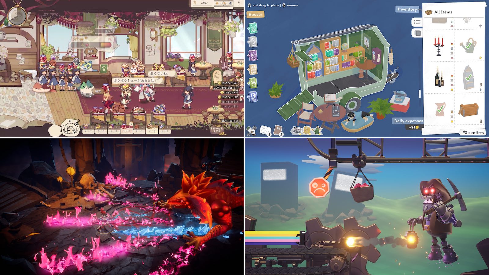 ・ダンジョン探索アクションとパン屋経営シミュレーションを組み合わせたRPG。横スクロールアクションにてモンスターと戦い、美味しいパンを作るための素材を入手。店ではその素材でパンを焼き上げて、島の住民たちにパンを販売する。パンの開発やスキルツリーを通じた各武器の強化、村の発展などの要素も用意されている。今週正式リリースされ、新たな島やモンスター牧場機能などが導入された。