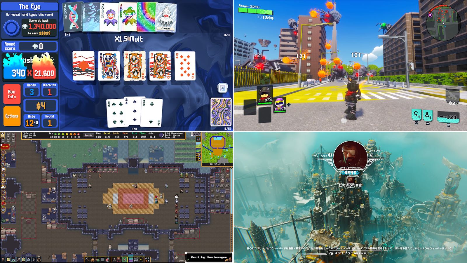 ・トランプのポーカーを題材にしたデッキ構築型ローグライクゲーム。デッキから引いたトランプでポーカーの役を作り、規定ラウンド数以内でステージクリアに必要なスコアを稼ぐ。ジョーカーカードやタロットカードなどによるシナジー効果をどんどん高めて、膨大なスコアを稼ぐゲームプレイが特徴となる。