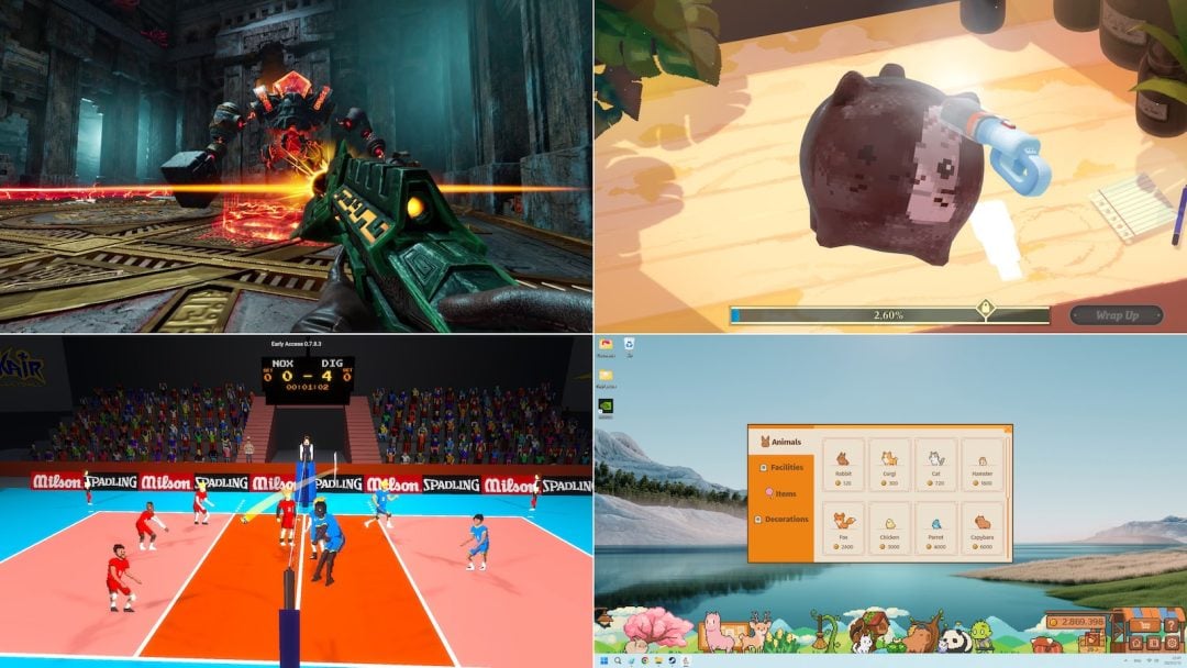 ・ローポリゴングラフィックの4人制バレーボールゲーム。ソロプレイおよびローカル協力・対戦プレイに対応。プレイヤーはチームの4人全員を操作し、タイミングが勝負を分ける緊迫感ある試合が展開。また、有望な選手をリクルートしたり、トレーニングで育成したりといった要素も用意されている。