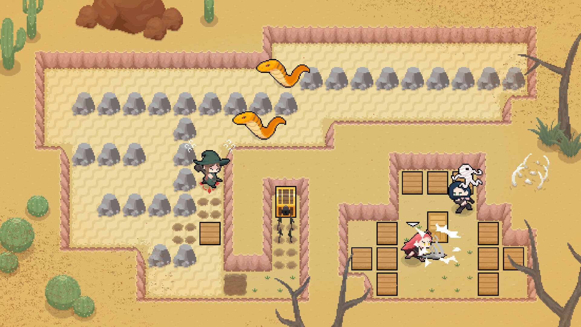本作は、ステージ内の鍵で宝箱を開けることが目的となる。ゲームプレイとしては、『倉庫番』と同様にマス目上のステージでキャラクターを動かし、箱やオブジェクトを押すことが可能。引っ張ることはできないため、回り込んで押すといったことが必要となるわけだ。また、そのままでは通れない罠があり、箱を特定の位置へ配置すると罠が解除される。さらに、鍵や宝箱も押すことができ、鍵は罠の上に乗ると壊れる、宝箱は罠の上に乗れる、といったオブジェクト毎にさまざまな特性があるため、それらを活用してステージをクリアしていくのだ。なお、ステージ内ではすべての動きが記録され、1手ずつ戻すことが可能だ。