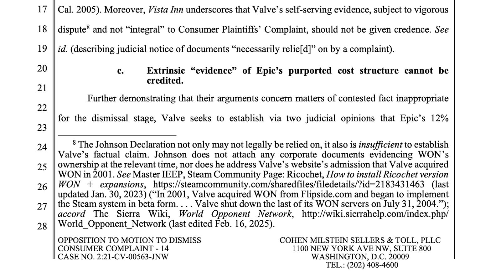 ただしValveは、WONを買収あるいは所有していた事実はないと、原告側の主張を否定した。これに対し原告側は、WONの買収については“Valveが自ら認めている”ことだと反論し、異議申し立てを通じてValve側が提出した証拠の却下を裁判所に求めた。