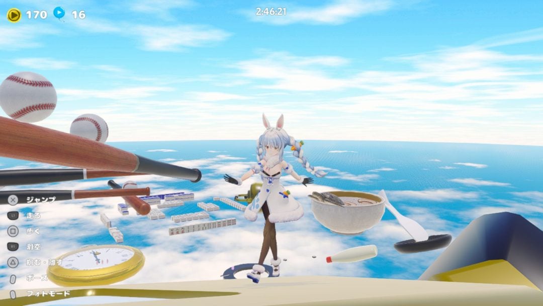 まず、定期的にチェックポイントがあるので、ミスしても比較的簡単に挑み直せます。加えて、滑空アクションがあることで、ミスしたときのリカバリーもしやすく、苦行系なのにストレスをあまり感じません。また、全ての足場がホロライブにちなんだオブジェクトになっており、進行に応じて異なる風景やギミックも用意。コインやエピソードといった収集要素もあることで、ジャンプ主体のゲームプレイに適度な変化も生まれてます。極めつけに、操作キャラクターは公式提供された高品質な3Dモデルが使われており、多少なりとも知っているキャラクターを自由に動かせる感覚はそれだけで魅力的です。苦行系の初心者だけでなく、ホロライブの歴史を学べる入門としてもおすすめです。