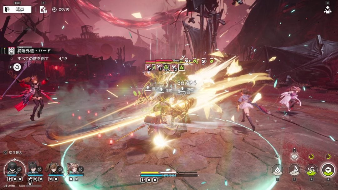 「この手のイベントは今やってるガチャのキャラが刺さるやろ!」と、ギルベルタを急ぎ育成してみたものの、私がこれまで育てていた管理人メインの物理パーティとの相性はあまり良くないのかもしれません。それでも敵を集める性能が唯一無二すぎて活躍してくれました。ブレイク状態の敵が密集していると、自動でターゲットを切り替えて終撃を連発してくれるのが気持ちよすぎますね。さりげない仕様ですが、かゆいところに手が届く!
