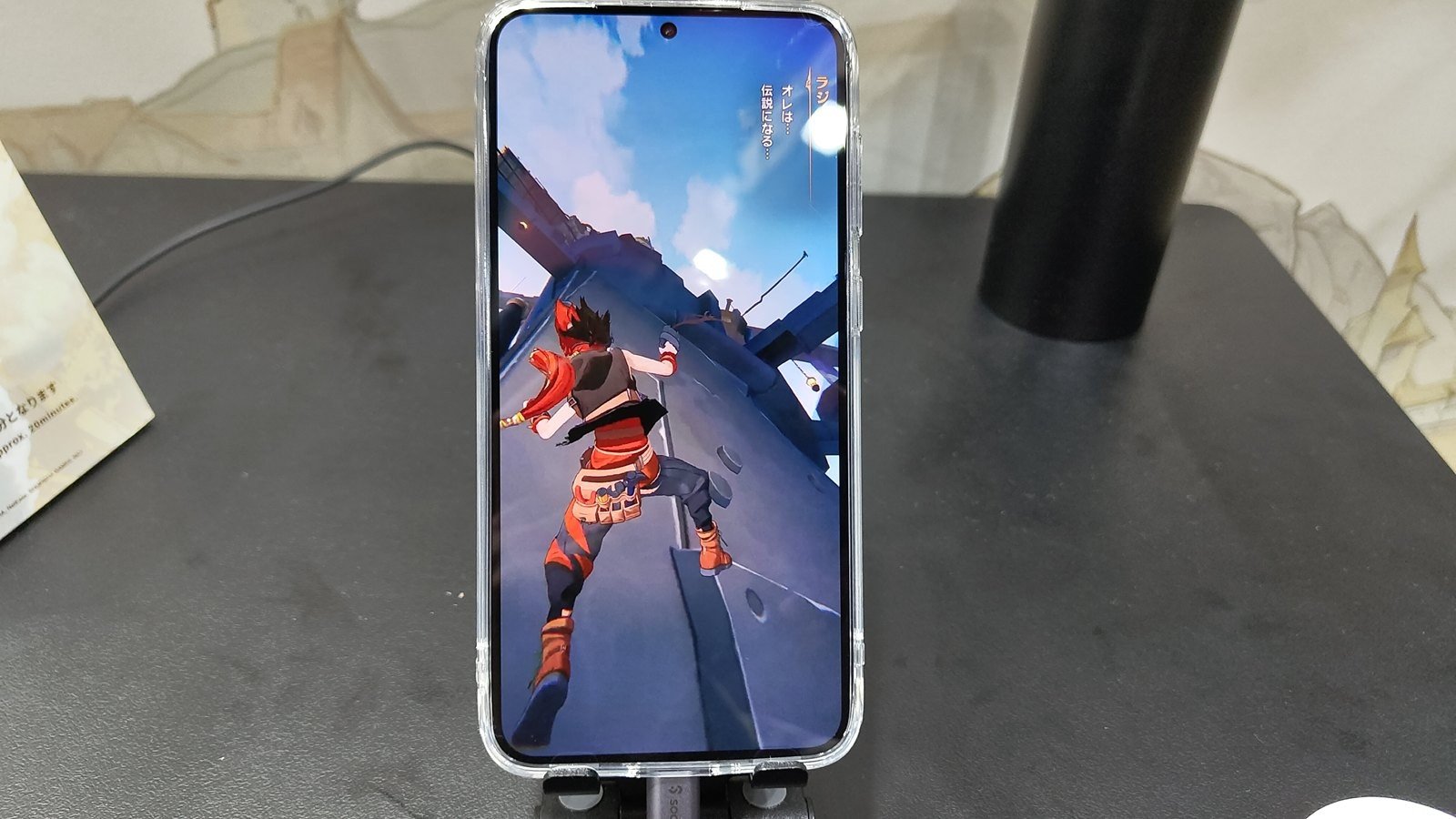 説明によると、ライズギアはスマホに似た形状のデバイスで、異界から「アウラス」と呼ばれる戦士を召喚できるのだとか。ピンチに直面した主人公が覚醒して逆転という、少年マンガの王道展開だ。正直に言うと、童心を腐らせつつある筆者は真正面な流れに気恥ずかしさも少し感じたが、胸が熱くなったことも否定できない。