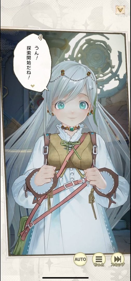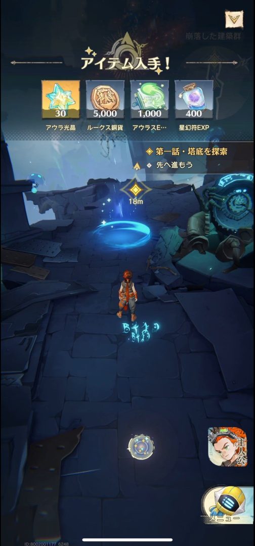 ムービーを交えてカマキリから無事逃走すると、ふたたび塔の探索パートに。道中にはところどころ宝箱が置いてあり、拾うとリソースがいろいろと入手できた。資源はいろんな種類があるが、おそらくキャラや装備の強化などに使えると思われる。このあたりは基本プレイ無料のRPGではお馴染みの要素だろう。