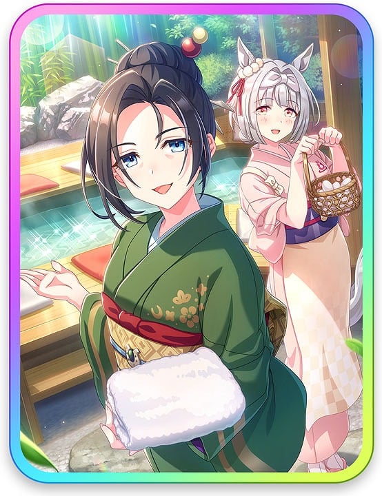 「ごくらく♪ ゆこま温泉郷」(以降、温泉郷編)のストーリーは「日頃疲れているトレーナーやウマ娘が温泉効果の偉大さに感動。だが衰退の危機にある温泉郷を再び盛り上げていこうとする」というもの。キービジュアルにいるシナリオリンクウマ娘達以外に見慣れないメンバーがいるが、1人が温泉の女将である保科健子(ほしなきよこ)であり、もう1人のウマ娘が若女将として修行中のウマ娘・ユノハナブルームである。今回この女将、保科健子が友人サポートカード[ゆるり、ゆこま旅館]保科健子として実装されることとなる。