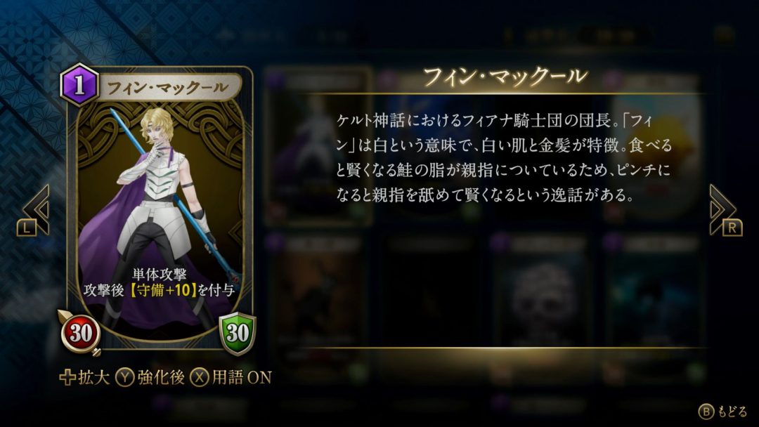 試遊でプレイした十六夜月のデッキは攻撃と防御のバランスに優れており、使いやすかった。攻撃に特化した「青龍」のようなカードも存在すれば、防御に特化した「モルモー」のようなカードも、攻撃と防御の両方を担当できる「フィン・マックール」のようなカードも存在する。カードによって防御能力をもっているか否かが変わることは、攻撃に特化したカードを重ねて引いてしまったときに、連続攻撃を食らってしまって死んでしまうおそれが下がるということだ。そういう意味で、十六夜月のデッキは安定したデッキである。