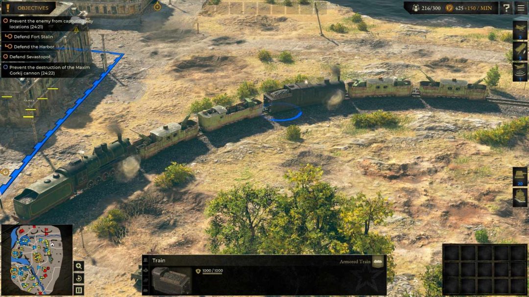 特に今回のデモで大きな存在感を放っていたのが装甲列車だ。線路上を移動する強力なユニットで、部隊輸送や砲撃支援などを行える。ただし無敵ではなく、運用には橋や線路の制御が必要になり、さらに修理拠点ステーションの確保など、活用するには戦場の支配が不可欠となる。単体の強力ユニットというより、鉄道網そのものを巡る戦略要素の一部として設計されている印象だった。