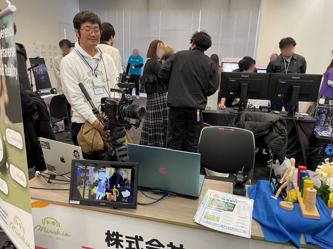 筆者が気になったのは、弊誌ブースの向かい側にあった「株式会社mirukia」のブース。Unreal Engineを利用し、カメラで撮影した実写映像とLive2Dモデルを合成する技術を展示しており、バーチャルのキャラクターを実写の空間に映しての撮影・配信が可能なのだそうだ。Live2Dだけでなく3Dモデルも配置できるそうで、車や家具など実際に持ち込むには手間や費用がかかるものや、実際の製造はまだ始まっていない設計段階のプロダクトなど、「現実と非現実を同じ画面に映す」という視点でさまざまなアイデアを実現することができる技術なのだそうだ。