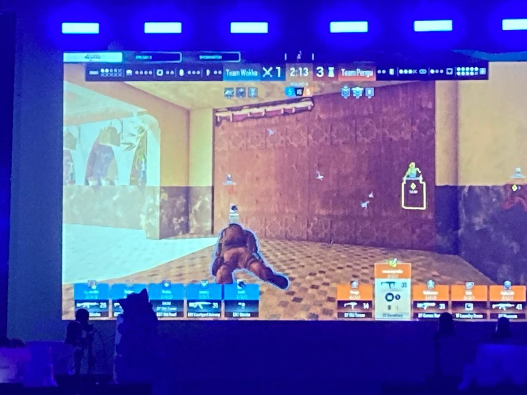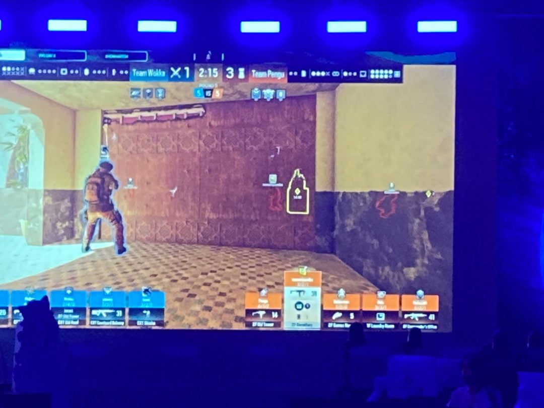『レインボーシックス シージ エックス』 の配信者ショーマッチで使われたステージは、要塞だった。破壊可能な壁や床が多く、新たな射線を作りやすいマップだ。そのことは攻撃側も防御側もわかっている。破壊することが勝敗に直結する壁の周りは、守備側は常に高い警戒度で守っている。いかに相手を出し抜いて、このような壁を破壊していくのかが『レインボーシックス シージ エックス』 の醍醐味のひとつであり、壁をめぐる攻防に観客のボルテージも高まっていった。