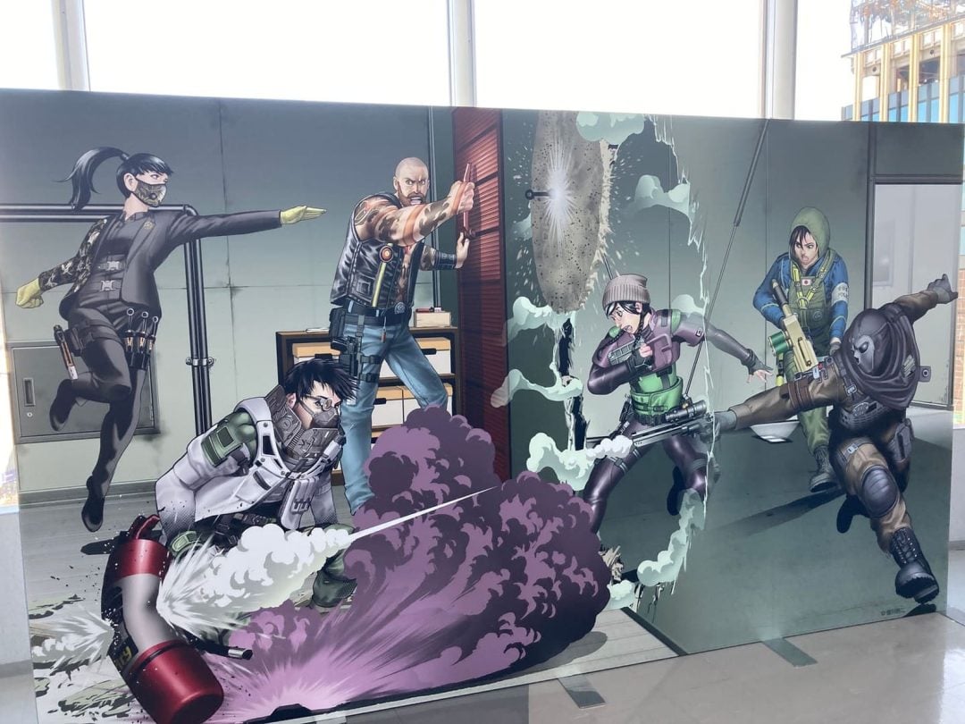会場内には『ディビジョン』や『レインボーシックス シージ エックス』にちなんだイラストボードが並ぶ場所があり、フォトスポットとして賑わっていた。ちょっとした休憩所も兼ねられており、eスポーツマッチ観戦の合間にここを訪れてしばらくしたら観戦にも戻っていくファンも見かけた。