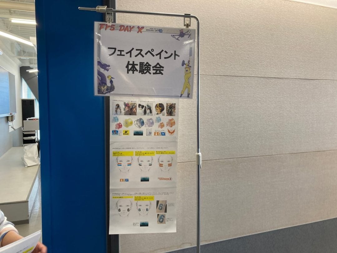 別の部屋では、フェイスペイント体験会なる催しも実施されていた。『ディビジョン2』や『レインボーシックス シージ エックス』を彷彿とさせる大胆なフェイスペイントをしてもらうこともできれば、顔ではなく手に「6」と小さめのペイントをすることもできる。試す前に仕上がりがわかりやすく掲示されているため、人気のコーナーのひとつになっていたように思う。
