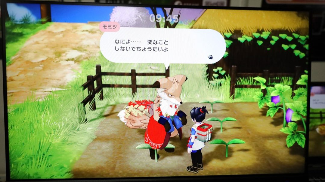 その後に触れた村パートでは、穏やかな村でのんびり過ごすことができた。地平線が近く、緩やかに湾曲して見える演出が、こぢんまりとした箱庭感を強めている。村人の頼みを聞いたり、魚を釣ったり、青空教室のような穏やかな光景を横目に歩いたりと、全体に流れる空気はやさしい。試遊では村パートで何を積み重ねていくのかは見えない部分もあったが、ときおりアイテムを拾えるなどRPG的な広がりも感じさせた。ムサシとモノノケたちの愛らしさ、そして敵を祓い、浄化へと導くおとぎ話めいた手触りの魅力は、短い試遊でも十分伝わってきた。