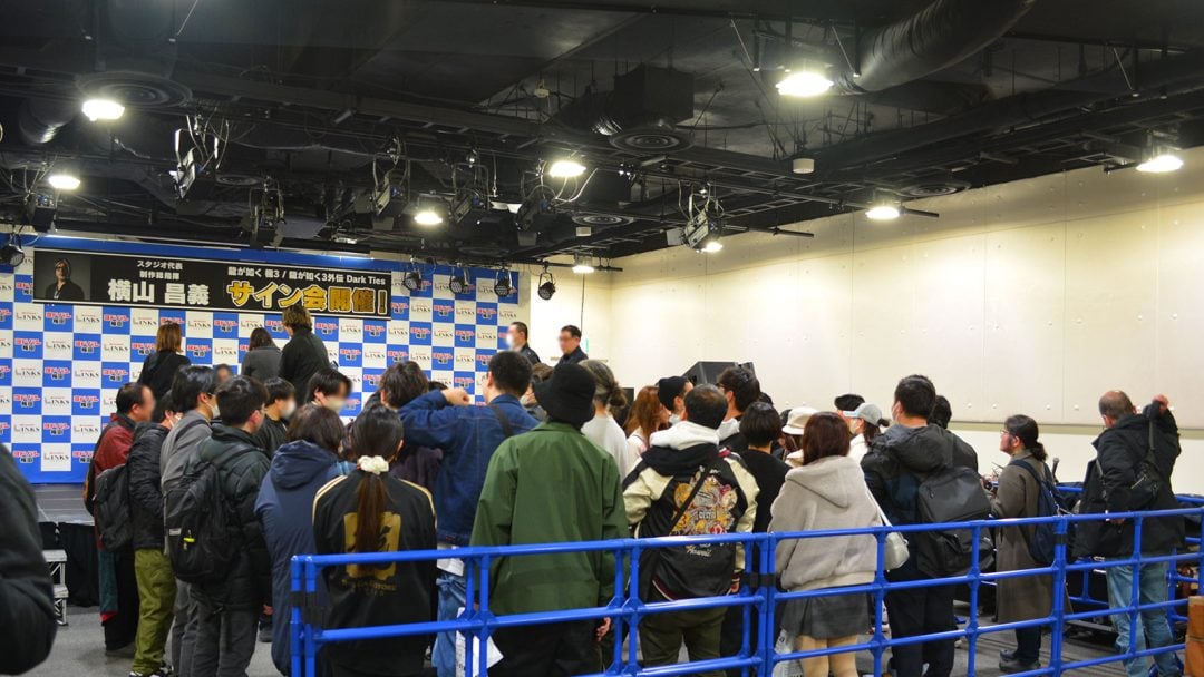 そして、いよいよサイン会の時間に。横山昌義氏(以下、横山氏)が会場に入ると会場が拍手で湧いた。背後のファンから「すっげえ、本物だよ……」という声が漏れ聞こえるなど、龍が如くスタジオの「顔」である横山氏の人気がうかがえた。