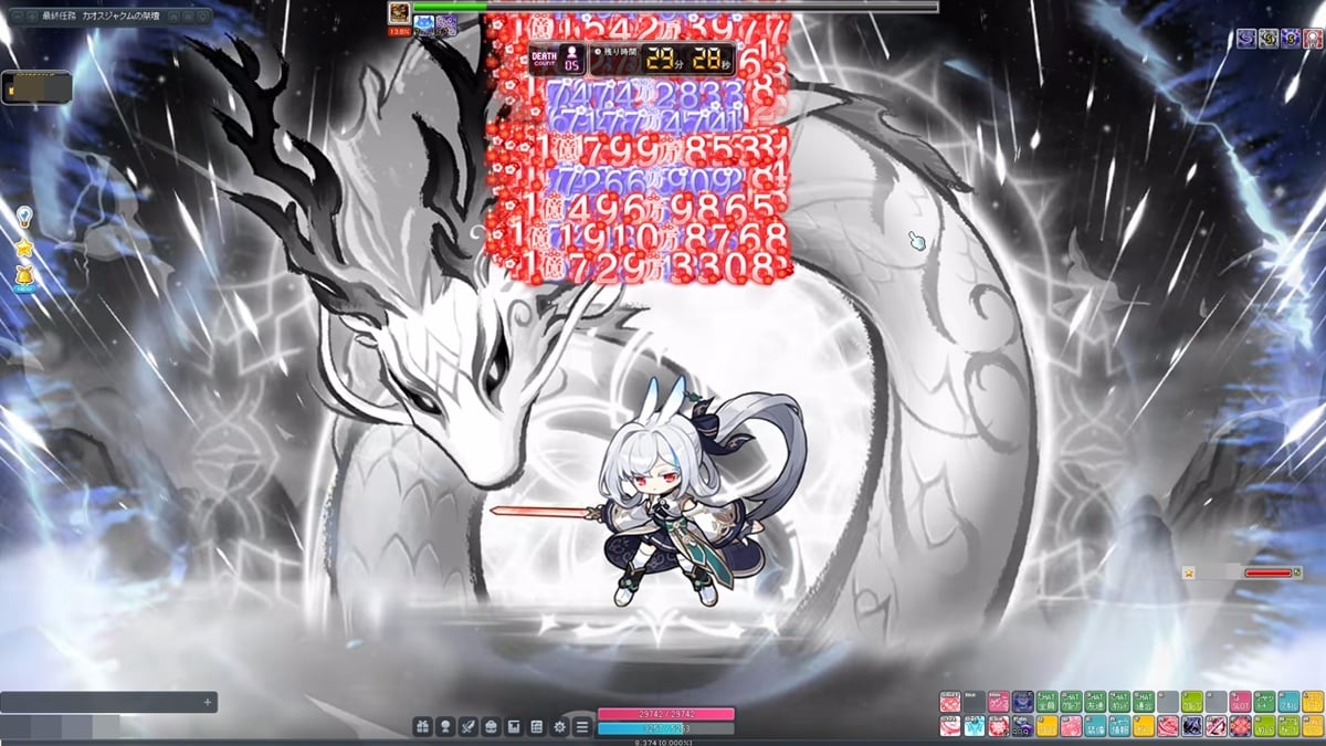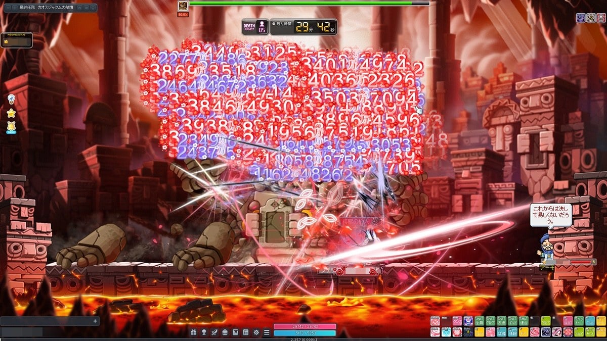 また、素早く走り回り、剣を絶えず振り回しながら二段ジャンプすることも可能なのでDPSが下がりにくそうだ。動きの制限をほとんど感じさせない自由なアクションができるところが、大きな魅力となっている。各ボス戦でも、レンならではの華やかなエフェクトとアクションをかなり楽しめそうだ。多彩な視覚エフェクトを放つスキルを順次放ちながら、ボスの体力ゲージをゴリゴリと削っていくのは気持ちが良い。メイプルの楽しさを味わいやすいキャラクターといえるだろう。さらに無視できないのは、レンがもつリンクスキル効果はなんと「被ダメージ4%減少」。既存に限らず全てのプレイヤーがレンを育成したくなる大きな魅力のひとつだろう。
