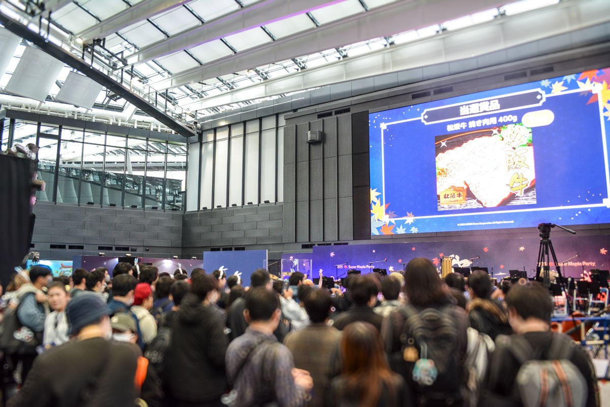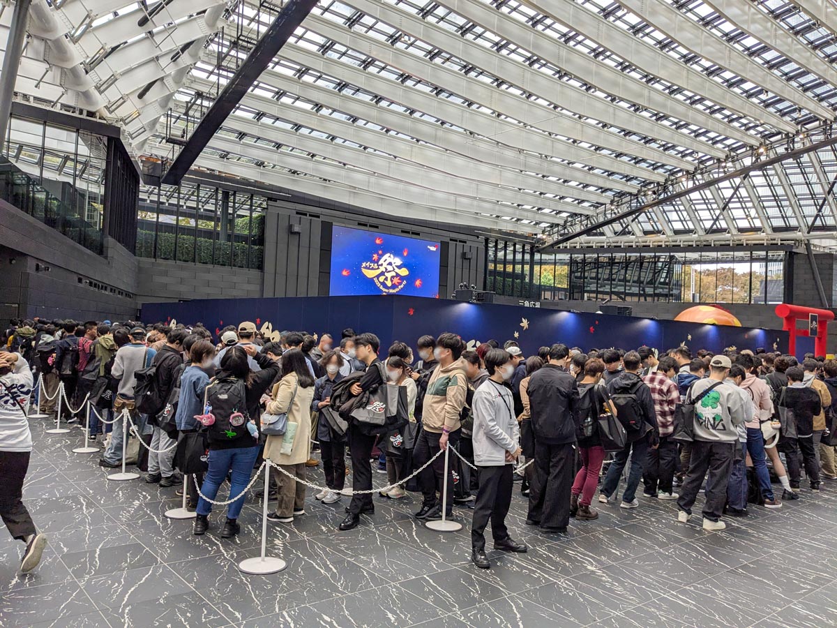 まず目に入ったのは、参加者たちの長蛇の列。広い会場に所狭しとファンが詰めかけており、入場の時を今か今かと待ち構えていた。実をいえば筆者は、『メイプル』が盛り上がっていることはなんとなく頭ではわかっていた。ログインすれば多くのプレイヤーたちが息づいており、“過疎”の気配などは無縁。昨年度は日本などの地域で第3四半期における過去最高益を記録(資料pdf)しており、22周年を迎えてなお隆盛の途上にある作品であると認識はしていた。