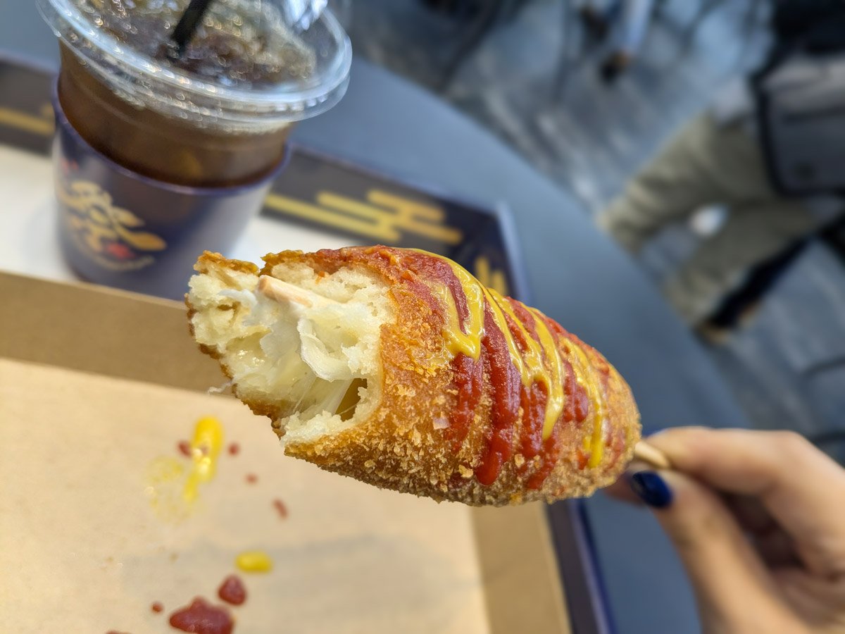 筆者はモンスターマカロンの可愛さに心惹かれつつも、チーズドッグとアイスアメリカーノをオーダー。お祭りで食べるグルメはやはりおいしい。実をいえば、その前にも揚げマンドゥとラムネを食していたのだが、とても美味しくてうっかり写真を撮る前に全部食べてしまった。