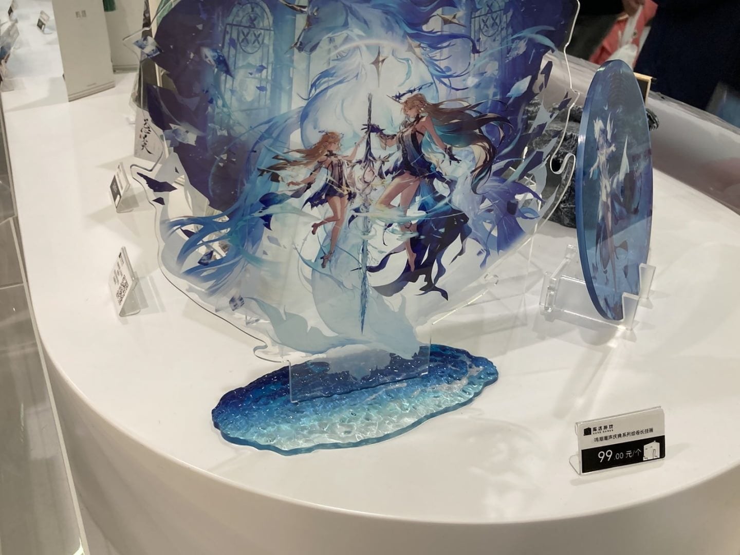 「監修中」と表記されたまだ発売されていないグッズの見本が展示されているのも貴重であった。これから発売が予定されているグッズは必ずしも新キャラクターばかりではなく、従来から存在するキャラクターのものもあるようだ。『鳴潮』は運営型のゲームであるためにどうしても新キャラクターに注目が集まってしまうが、従来からのキャラクターのグッズも出るのは、筆者お気に入りのキャラクターが忘れられていないことが実感できた。