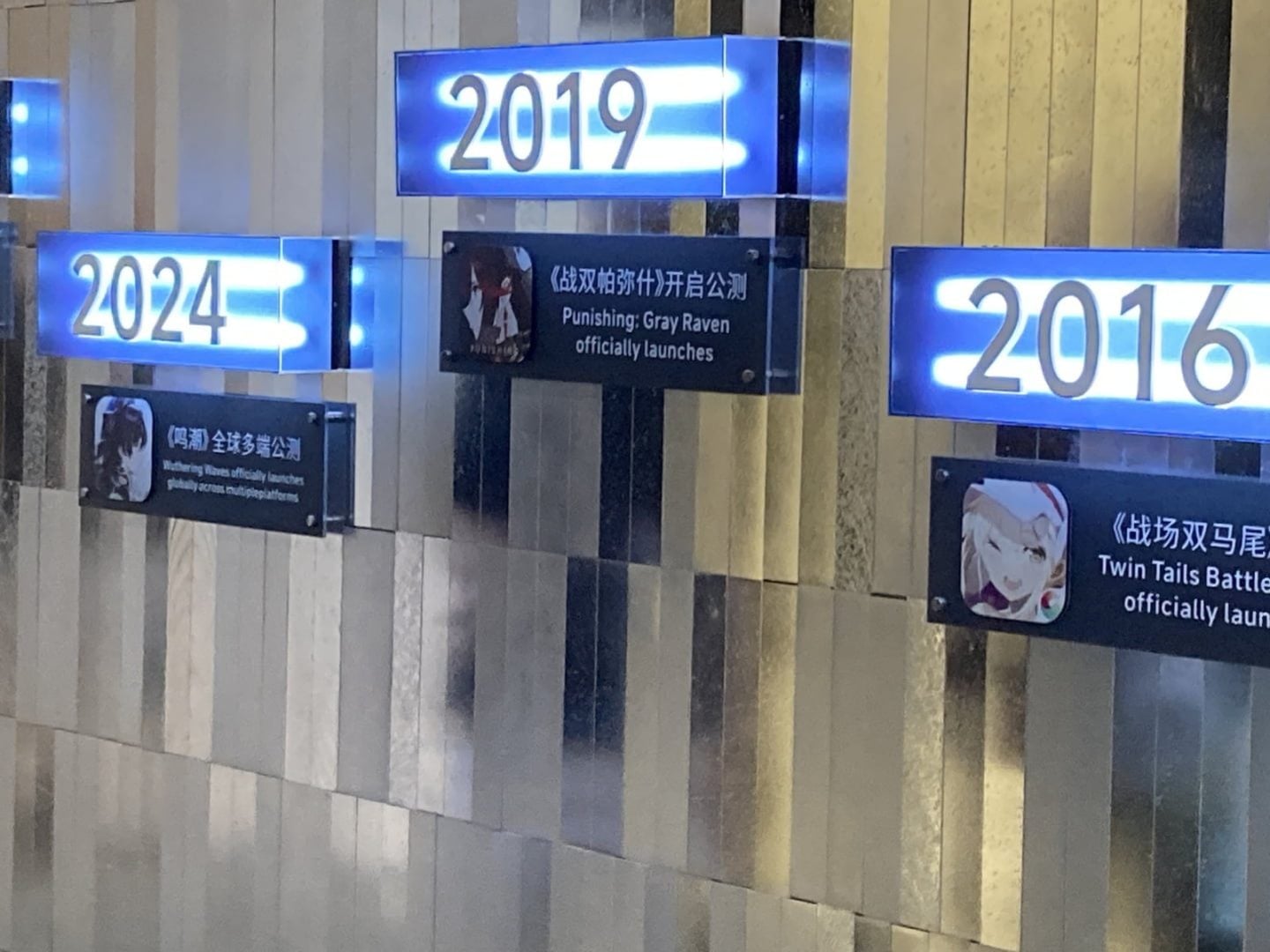 KURO GAMESのフロアに降り立つと、まずはKURO GAMESが歩んできた歴史を記したボードが目に入る。2024年の『鳴潮』といったように開発タイトルがリリースされた西暦がわかるほか、これまで受賞したアワードなども展示されていた。なお、『鳴潮』は世界的なゲームアワードである「The Game Awards 2025 」でPlayers’ Voice部門を受賞した。そちらも『鳴潮』の栄光を伝える勲章として、今後は展示されることになるのだろう。