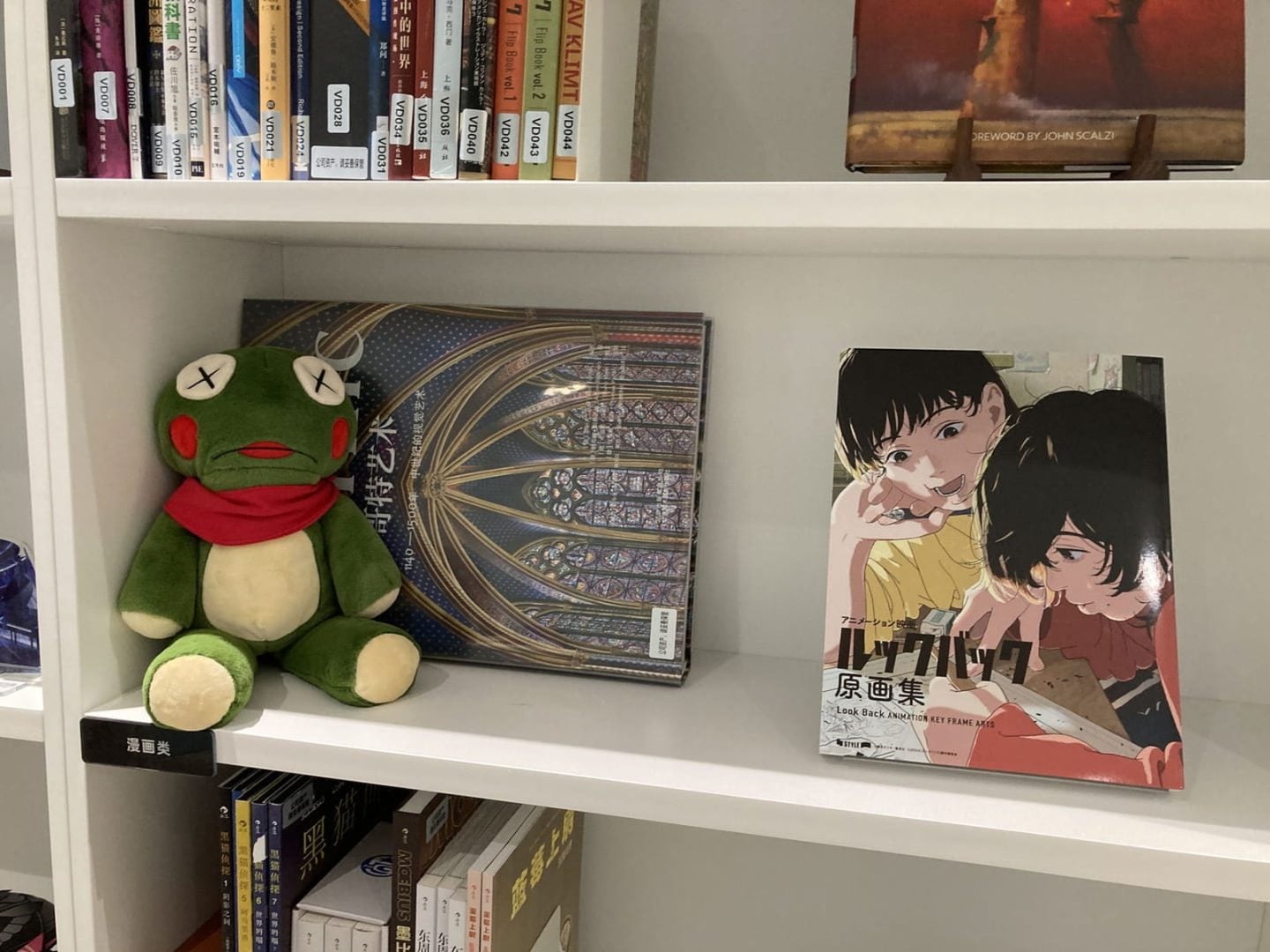 KURO GAMESがゲームを開発するうえで参考にしている資料が収蔵されている「ライブラリー」も見学することができた。映画やアニメの原画集からシナリオの書き方といったものまで、収蔵されている資料の分野は多岐にわたる。KURO GAMESの開発陣は日本の作品に普段からアンテナを張っているようで、映画監督の黒澤明に関する書籍や、藤本タツキ原作の映画「ルックバック」などの資料が置いてあった。
