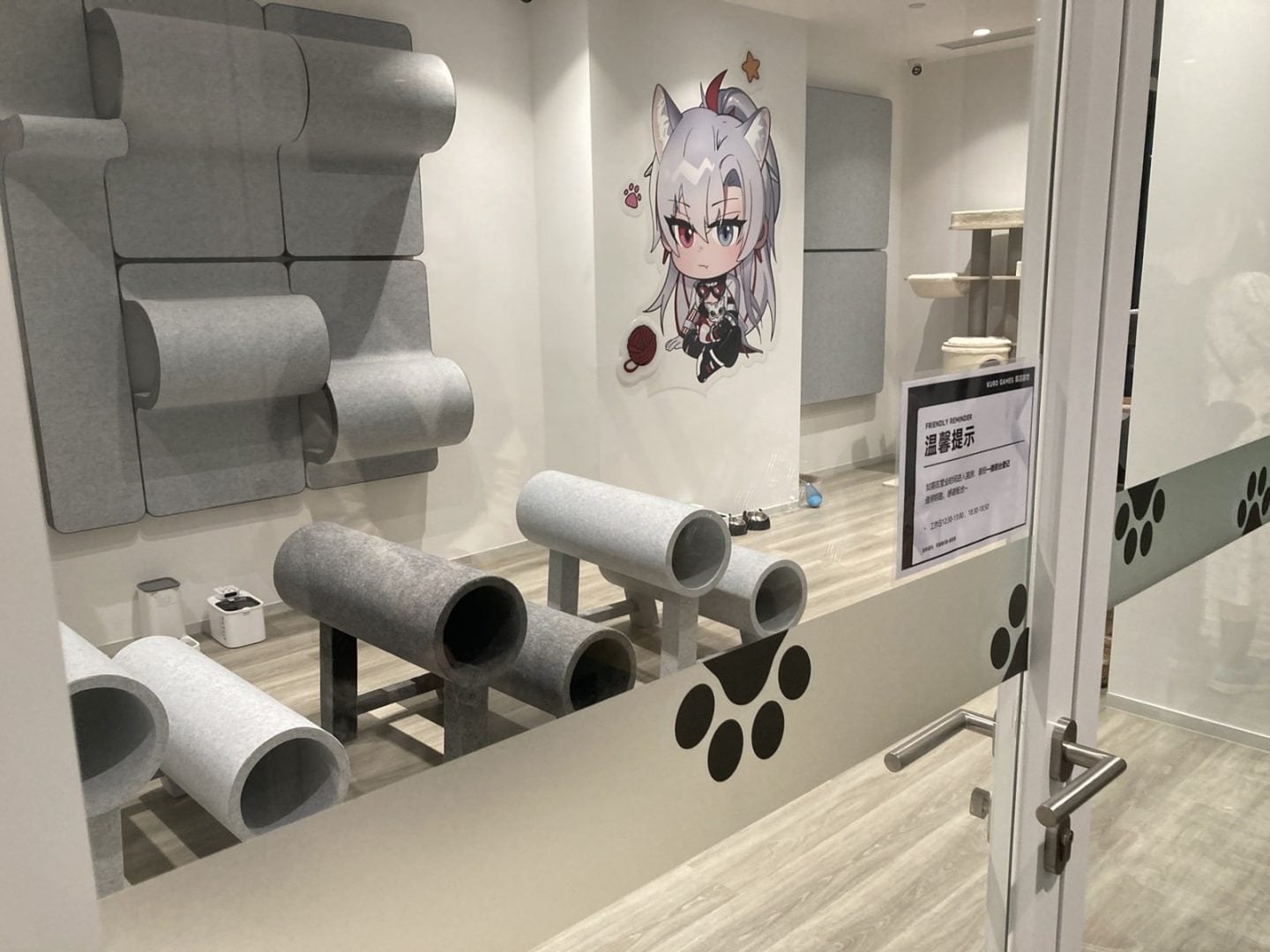 ライブラリーでクリエイターとしての発想力を養い、トレーニングジムで体を鍛えるのもいいが、KURO GAMES社員にとって最大の癒しになるのが「猫」だという。どういうことなのか話をうかがってみると、KURO GAMESには猫が暮らす部屋があるというのだ。そちらをうかがってみると、たしかに猫が穏やかに暮らしていた。