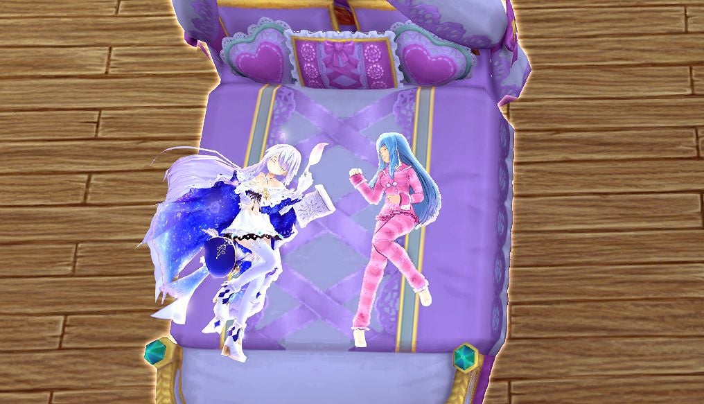 幻神と協力してバトルや成長をする以外には、どのような交流が可能なのだろうか。相棒・育成要素好きな筆者にとって、もっとも興味が湧くのは好感度システムの有無やその内容だ。本作では、「Another Fate」と同様に、幻神の重複入手での限界突破(ランク上げ)や好感度システムが存在するとのこと。キャラクターと幻神がともにレベル60以上、幻神ランク☆3となると幻神と結婚もできるそうだ。結婚できる幻神の数には制限はないそうなので、今すぐお気に入りの幻神を片っ端から育てて重婚したい(強欲……)。好感度がMAXとなった幻神とは自宅で添い寝をすることができるほか、頭上に表示されるキャラクター名のフォント色もピンクに変更され、好感度MAX状態であることがほかのプレイヤー目線でもひと目でわかるようになるというのも面白いポイントだ。
