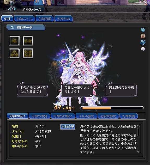 もともと神話、童話、架空の生物などが好きなので、多彩な幻神一覧を眺めているだけでも楽しい。エジプト神話のバステトが人型である一方で、クレオパトラは黒豹だったり、ギリシャ神話の「イカロス」はロボットのような見た目をしていたりと実に多彩だ。中には、プレイヤーコミュニティからのリクエストでフェンリルを実装したというようなことも過去にはあったそうなので、今後の追加にも期待が高まる。