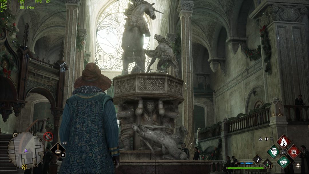 続いて、今回のアップデートで追加されたもうひとつの主要機能「ダイナミック マルチフレーム生成」を検証。低リフレッシュレート環境での挙動を確認するためモニターを144Hzに設定し、『ホグワーツ・レガシー』をプレイした。