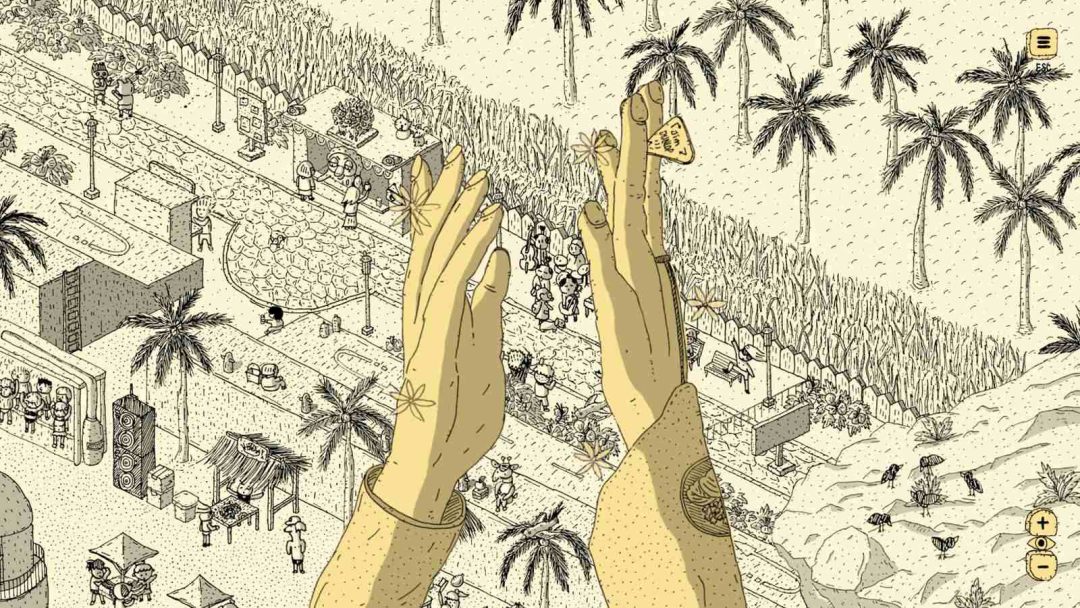 なかでも印象に残ったのは、寄り道の楽しさだ。たとえば水を欲しがっている人に別の場所で手に入れた水を渡すと、ハイタッチして仲良くなれる。これは進行に必須の要素ではないが、手と手が触れ合うアニメーションは心地よく、自然とあちこちに立ち寄りたくなる。気づけばポルカを追うこと以上に、この街をもっと歩きたいと思わされていた。