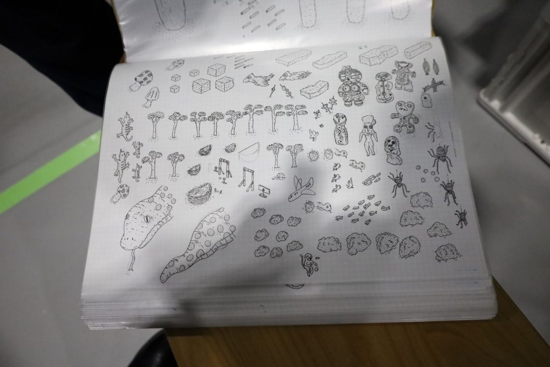 ありがとうございます。描き込みもそうですが、アニメーションもPCで加工して動かしてもいいところを、パラパラ漫画みたいに全部手で描いているんですよね。原画も大量にあって、まだ出てくるかわからないキャラクターまでしっかり作られている。見た目はポップで可愛らしいのにやっていることは狂気的です。