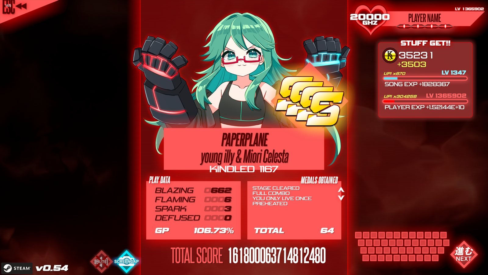 プレイ中は、このヒートゲージをどのタイミングで上げるかが重要になる。勢いよく上げて一気に稼ぐか、ミスを警戒してクールに行くか。ランキング争いは単なる“叩き合い”に見えて、実際には戦略的な思考が要求される。高難度譜面ではそもそもノーツが詰まっていることが多く、隙間にタイミングよく入力を挟む技術も必要になる。「譜面通りに叩く」という意識と並行して、「いかに譜面以外の場所で叩くか」を考えるゲームにもなっているのが面白い。