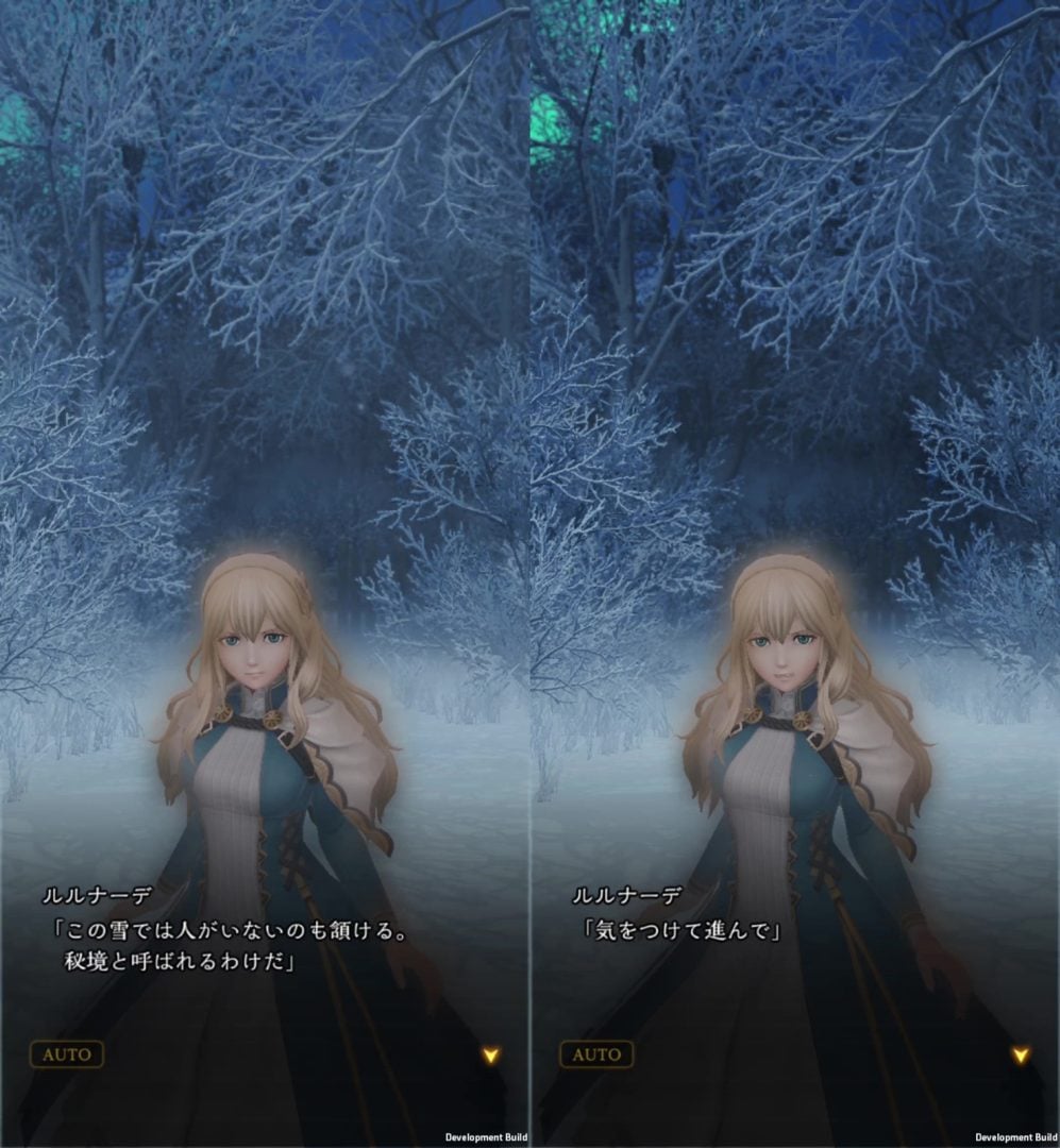 吹雪の中では視界も悪く、プレイヤーの方向感覚を失わせるギミックとなっている。