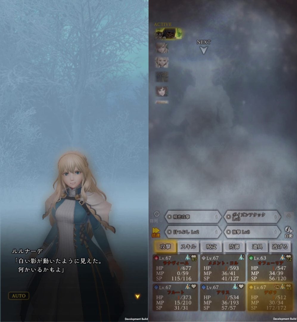 「吹雪」の中の戦闘はお互いにメリット・デメリットあるが、基本的にデメリットの方が大きいと考えていいだろう。可能な限り敵との戦闘を避けたいところではあるが、視界の悪さがそれを拒む。ただし前述のようにこちらが「利用する」術もあるため、プレイヤーの腕が試されるところではある。