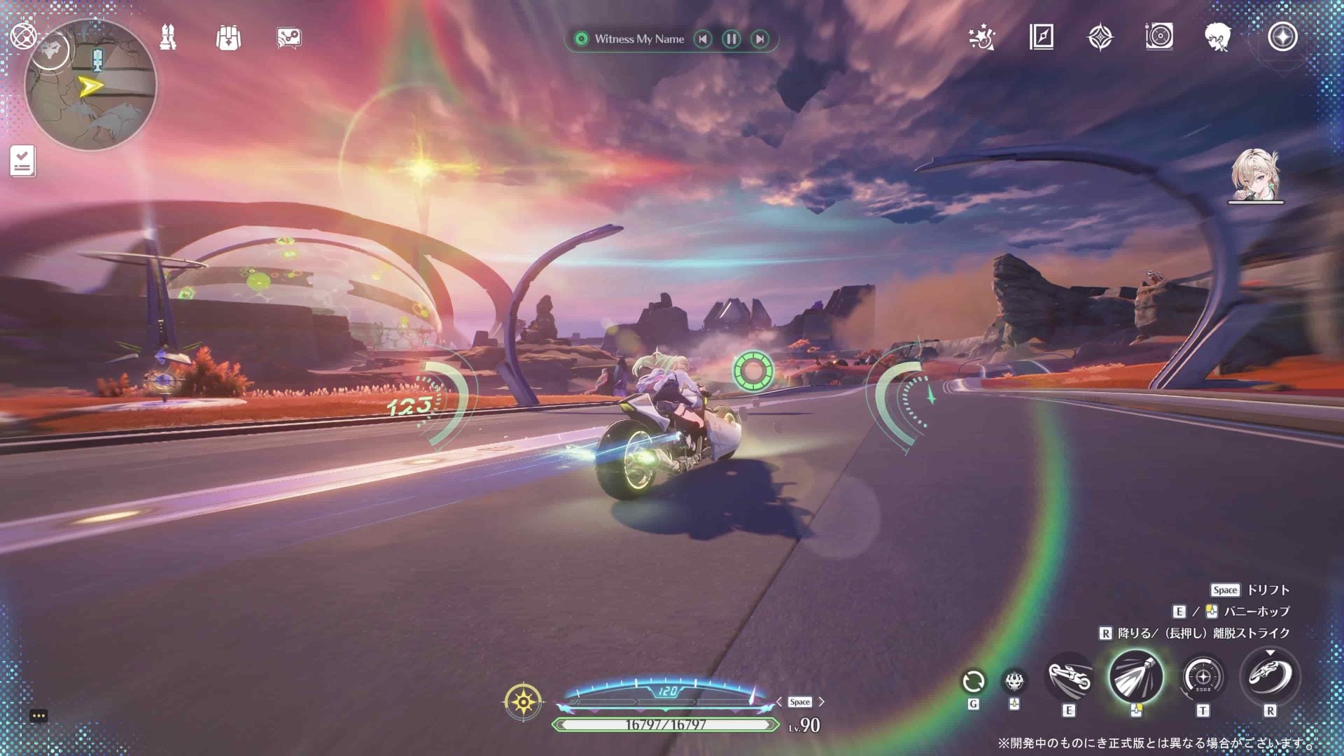 バイクの性能や外見はカスタム可能となっており、その点についてもソアーよりはプレイヤーの個性を表現しやすい。各種のイベントをこなすことでカスタマイズできる幅が広がっていくことは、『鳴潮』を継続的にプレイするモチベーションのひとつとなりそうだ。外見用のペイントパーツの使い方によっては漆黒に包まれたクールなバイクにしたり、Ver3.0に新キャラクターとして登場するリンネーのデザインがガッツリ入った“痛車”も作れそうなほどバラエティ豊かなものとなっている。スクリーンショットでお伝えできないのは心苦しいものの、かなり自由度の高い外見のカスタマイズができるようだったことは伝えておこう。