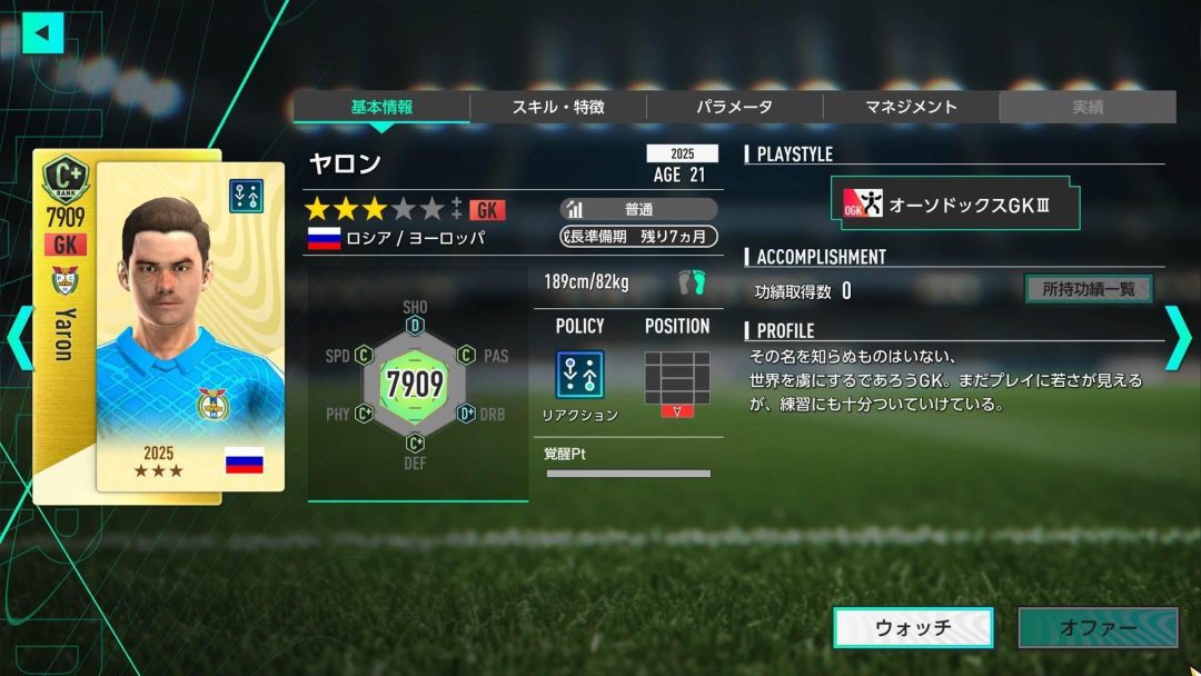 ヨーロッパナンバーワンの監督になるために、次は別の国で戦ってみようと思う。スペインのクラブの情報を調べていると、FCミュンヘンとは異なる形でヨーロッパのナンバーワンを目指せる選手たちであふれかえっていた。私がとりわけ興味を惹かれたのはマドリードFCだ。「その名を知らぬものはいない」の寸評で作中最強クラスを意味するGKのヤロンやAMディザンなど、その時代のスターになることのできる大器がそろっている。圧倒的な個の力をベースにしつつ、最高の戦術が学べる場所といえるだろう。ただし、これだけの戦力が揃っているためシーズンを通して無冠はありえない。私は監督としての進退を賭けてスペインで挑戦するつもりだ。