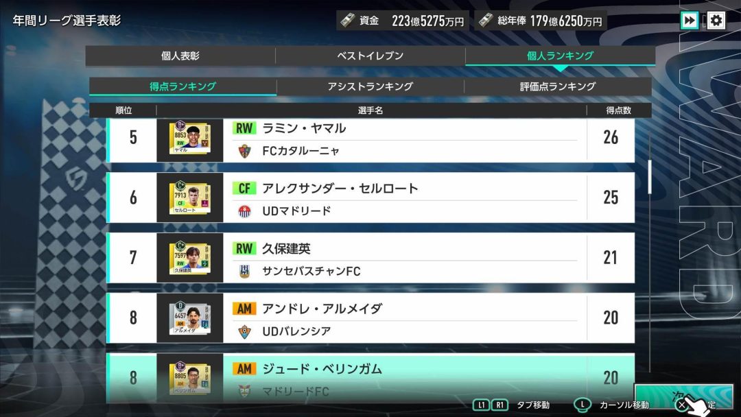 また今回は監督としてやるべきことが明確になったシーズンでもあった。これまでに、さまざまなポリシーのクラブを指揮してきた。それらは必ずしもヨーロッパ最強を目指せるクラブではなかったものの、ポリシーに応じてクラブの戦力を最大化できるはずだ。今回のマドリードFCでは金のフォーメーションコンボを使って、選手やクラブをかなり強くすることができたと思う。今後はこの方法を使って、最強のクラブを目指していきたい。