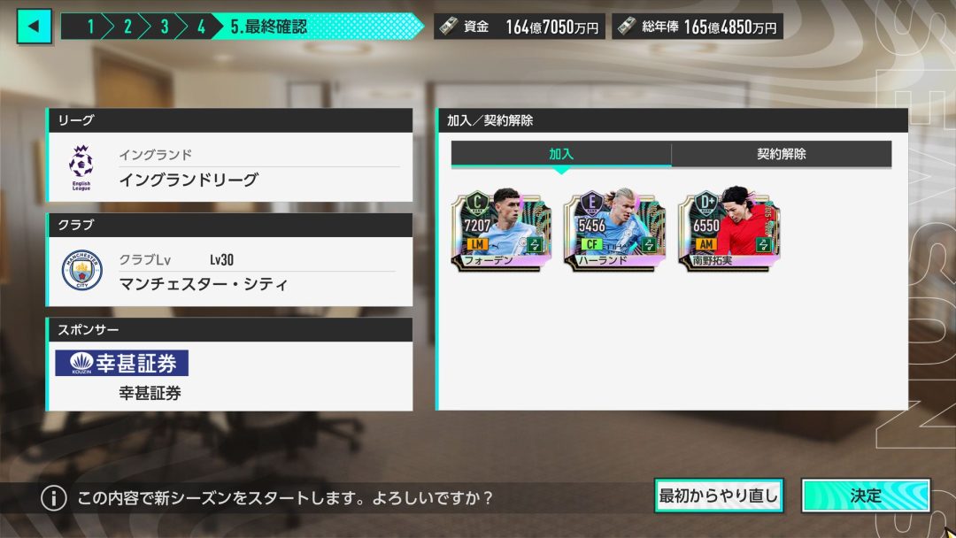 いくら叩きのめされても、監督としてはクラブの期待に応えるように努力しつづけなければならない。プレイ日記初の2年連続でリーグ制覇に挑戦することになったが、クラブが信頼してくれる限りは私から降りることは決してないだろう。無冠に終わったのでもはや「常勝」を名乗ることができないが、未来の栄光をつかみ取ればいい。