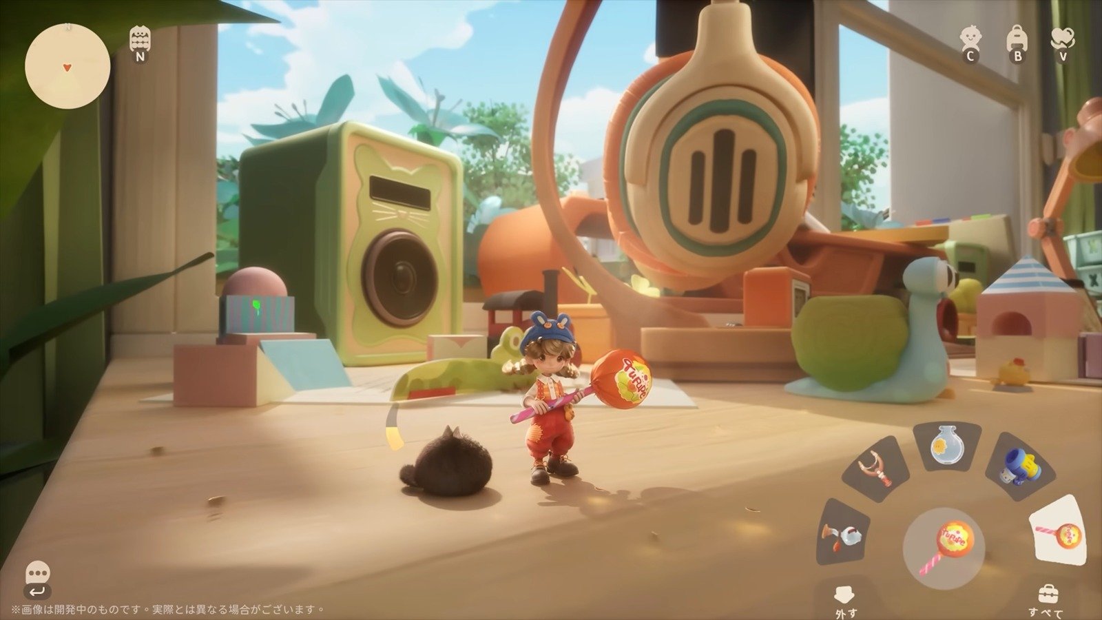 試遊で最初に心を掴まれたのは、巨大な日用品に囲まれるスケール感だった。目覚まし時計が自分の身長ほどの大きさで、ヘッドホンが建造物のように鎮座している。普通なら不安や異世界の恐怖を煽るシチュエーションだが、『リリのワールド』では真逆だった。